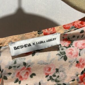 Batsheva x Laura Ashley limited edition collaboration mini dress. Long puff sleeves with ruffle wrist detail. Floral print that was discontinued. No callouts to note. Back zipper. Stock photo added for reference.