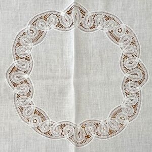 Vintage linen Battenberg Lace table cloth measuring 42 inches square. Like new condition.