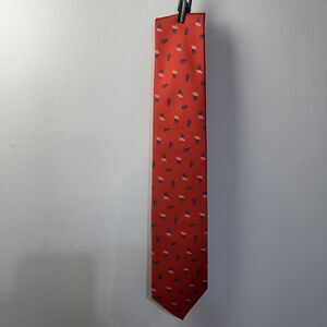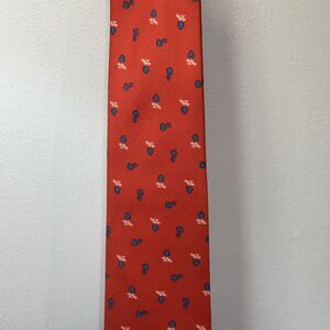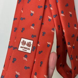 BATTISTONI Men's 100% Silk Tie Red Blue Geometric Floral Design Necktie Italy