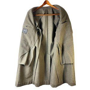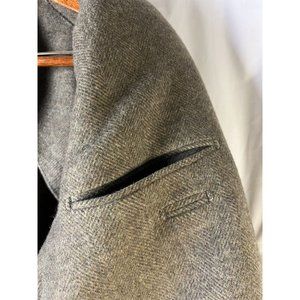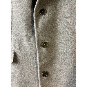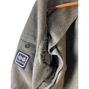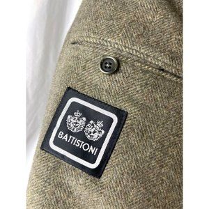 Experience the luxury and warmth of BATTISTONI, Roma's 100% Italian Merino Wool Trench Coat. This men's size Large coat, in a stunning Heather Green, features a button-up design, a notched collar, and a solid green pattern.