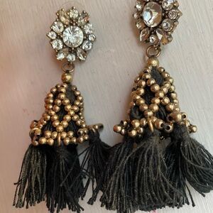 Like new Baublebar Crystal, gold bead and black thread tassel bohemian post earrings. EUC, great shape, approximately 3” length, can dress up or down. See pictures for details.