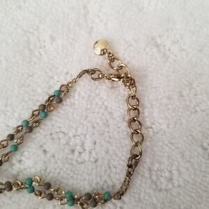 BAUBLEBAR Pendant Necklace Double Strand Swag Links Turquoise Gray Beads 16-18"