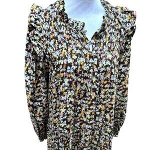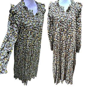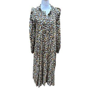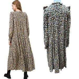 BAUKJEN STEFANIA MAXI BOHEMIAN PEASANT FLORAL PRINT DRESS SIZE LARGE 10/UK 14