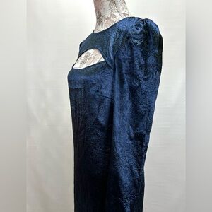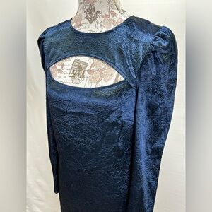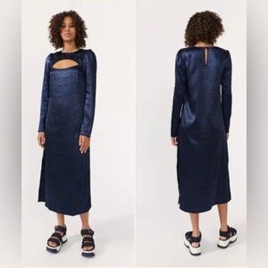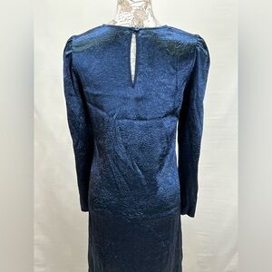 Navy blue crinkle puff sleeve open front maxi dress from BAUM UND PFERDGARTEN, size 38/6US.