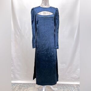 BAUM UND PFERDGARTEN Blue crinkle puff sleeve open front maxi dress size 6