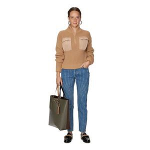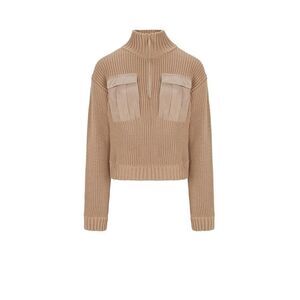 Strongly inspired by the utilitarian trend, the Clyde jumper from Baum und Pferdgarten has an androgynous design. This cool merino wool blend model has a zip-up high collar and several flap pockets on the chest and left arm. Ribbed, it is elegant and functional at the same time.