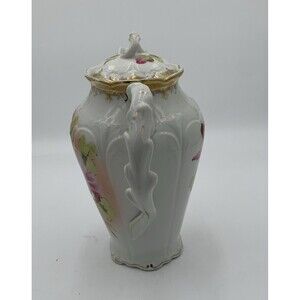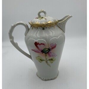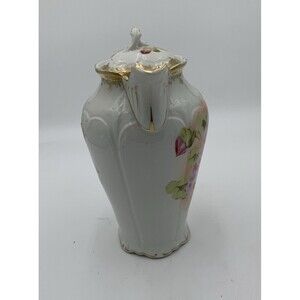 This Bavaria Germany hand-painted tea pot featuring wild roses and golden trim is a vintage piece of decorative cookware perfect for tea and coffee lovers. Made of porcelain with a glossy finish, this tea pot showcases intricate hand-painted details and a floral pattern, adding a touch of elegance to any tea or coffee service. The Limoges origin and German craftsmanship make this tea pot a unique and collectible item for those who appreciate fine pottery art.