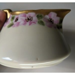 BAVARIA HAND PAINTED ROSE FLORAL & GOLD ART DECO CREAMER & SUGAR