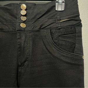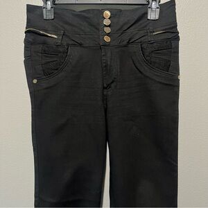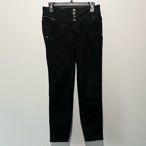 BAXTER- Butt Lifting Black Columbian Jeans Size 11. Mid rise skinny jean style. Thin gold rhinestone belt around waist area, as seen in pictures. Material is high quality and has a lot of stretch. Excellent condition.