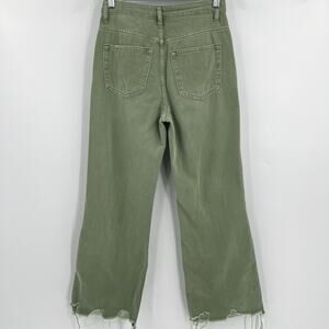 BAYEAS Wide Leg Jeans Green Denim High Rise Raw Hem Distressed Women’s Size 24