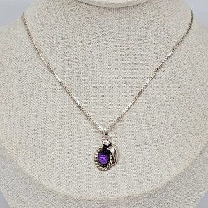 BB 925 Sterling Silver - Amethyst & Cubic Zirconia Pendant Chain Chain Necklace. 17 long with spring ring clasp, marked 925