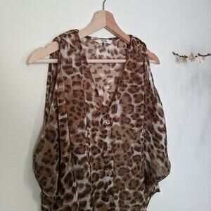 BB DAKOTA Animal Print Leopard Button Down Sheer Blouse Drape Oversize Small S