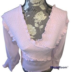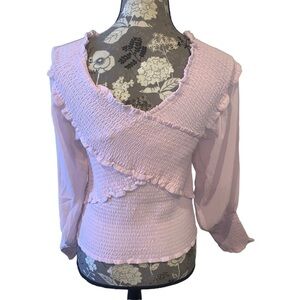 BB DAKOTA Baby Pink V Neck Blouse Size Large New with tags