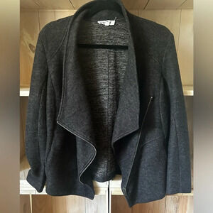 BB DAKOTA Dark Grey Asymmetrical Zip Fleece Moto Jacket Size Medium