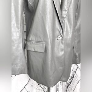 Gray faux leather single button blazer.