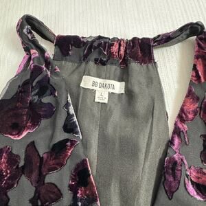 A statement-making piece from BB Dakota, this velvet burnout dress features a romantic floral design in deep jewel tones. With a sleeveless cut, V-neckline, and flowy A-line silhouette, it’s the perfect mix of edgy and feminine. Whether paired with tights and boots for fall or worn alone for an evening out, this versatile dress adds instant style. Items come from a smoke-free home.