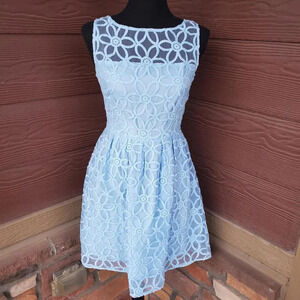 BB DAKOTA Women's Blue Floral Lace Tulle Sleeveless Fit and Flare Dress Size 2