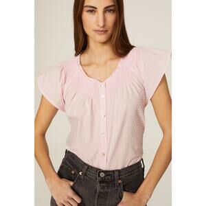 BB DAKOTA Women's Light Pink 100% Cotton Button Front Fairy Dust Top Size Medium