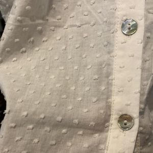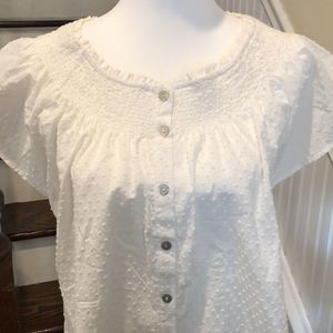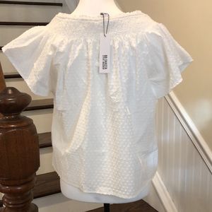 Brand New Crisp White Blouse With Flutter Sleeves and White Embroidered French Dots
