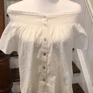 BB DAKOTA by STEVE MADDEN White French Dot Flutter Sleeve Button Front Sz LRG