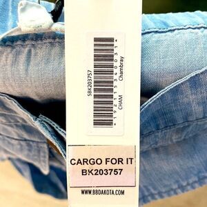 BB DAKOTA light denim buttons pockets belt elastic back adjustable straps