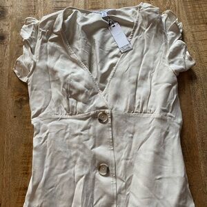 BB DAKOTA size 6 long button up down dress bone ivory off white short sleeve NEW with tags NWT
