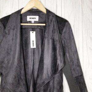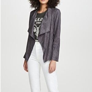 BB DAKOTA Wade Drape Front Faux Suede Gray Grey Jacket