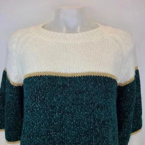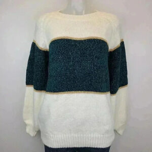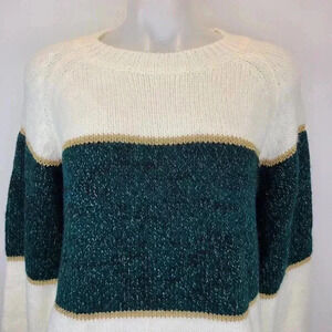 BB Dakota Aesthetic Dept. Ivory Metallic Green Colorblock Stripe Sweater Small