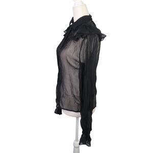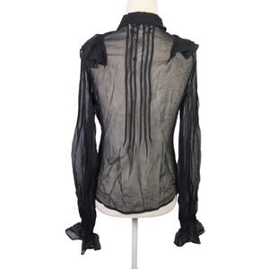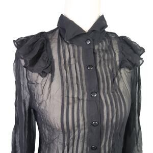 BB Dakota Black Silk Sheer Pintuck Pleat Ruffle Blouse Top Small