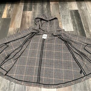 BB Dakota Calhoun Plaid Poncho Cape hoodie & pockets Size Medium Academia