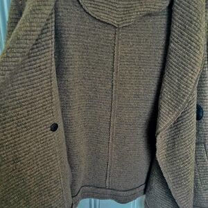 Gorgeous brown olive sweater jacket that can be worn on its own or layered. Easily impressive and flattering enough to wear to brunch, an event or out and about shopping.
