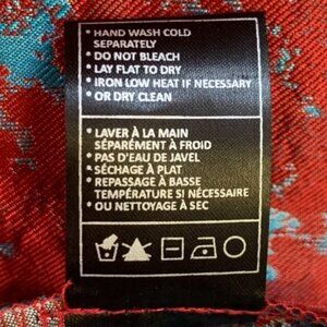 BB Dakota women's cocktail dress in a beautiful abstract brocade red and teal bluish color. This super pretty, feminine, pin-up style dress features a sheath fitted silhouette with a flared, box-pleated skirting. Fun, flirty and so elegant! This dress is unlined, so add a slip or undergarment for extra comfort.