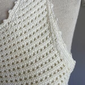 100% cotton sleeveless crochet, fully lined with a slight ruffle detail at the hemline