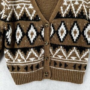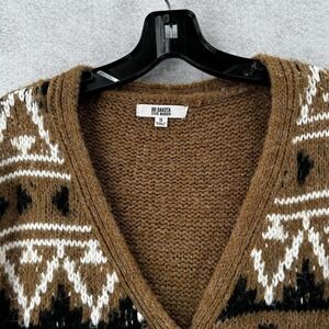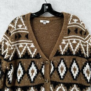 BB Dakota Cropped Cardigan Sweater SMALL All Over Print Boho Button Up FUZZY