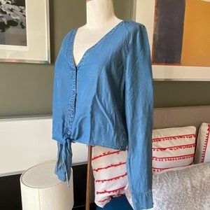 BB Dakota Denim Tie Front Long Sleeve Blouse Boho Chic MEDIUM - D1084