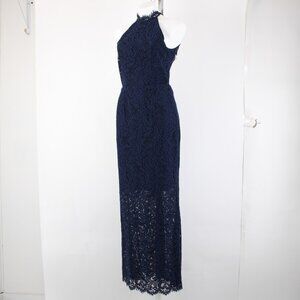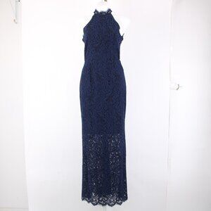 BB Dakota Dress Oilslick Sz 6 Navy Blue Lace Lined Open Back Cotton Dress