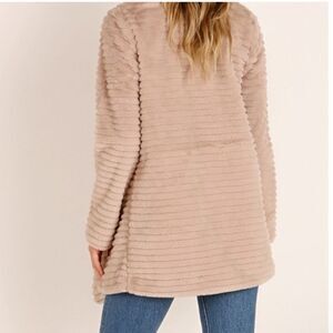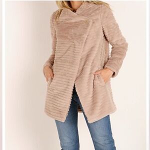 Never a dull moment when you're rocking this bad boy. The Fab Moment is a luxurious textured faux fur jacket with a draped open front silhouette and pockets.