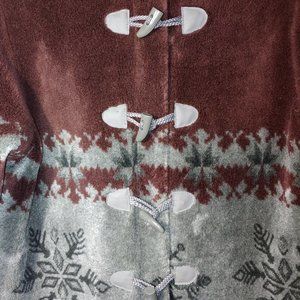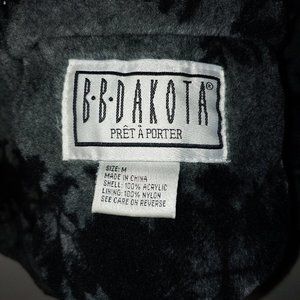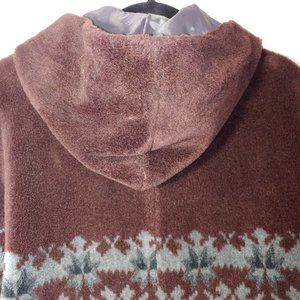 BB Dakota Faux Fur Plush Hooded Jacket Sz M Brown/Grey with black winter pattern