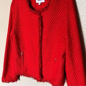 BB Dakota Feeling Fancy Red Tweed Zip Front Collarless Jacket Blazer Size Small