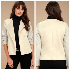 BB Dakota Glenna Faux Suede Sherpa Cream Beige Moto Jacket