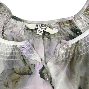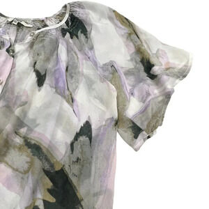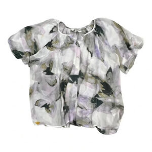 BB Dakota Gray Watercolor Sheer Flutter Blouse L
