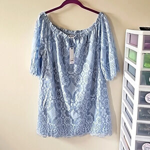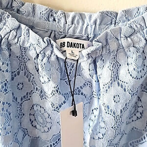 Brand new with tags BB Dakota Halden Light Blue Lace Off the Shoulder Dress sz Large.