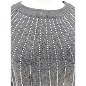 BB Dakota If You Fancy Gray Embellished Fringe Sweater XS Sparkle Western Glam
