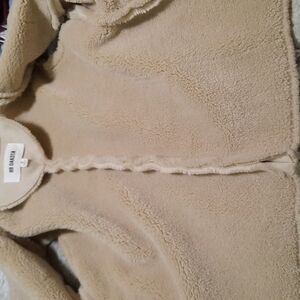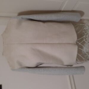 Light beige color with gray sleeves Very warm 3 snap buttons 2 pockets