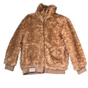 BB Dakota Jacket Womens Small Brown Side Pockets Fluffy Teddy Bear Zip Up Cozy