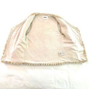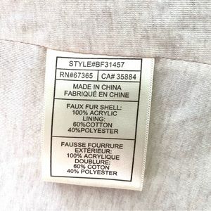 BB Dakota Keith Faux Fur Vest, size S. New condition, no tags. Acrylic outer, cotton blend lining. Pointed handkerchief hemline. No stains or flaws. Pit to pit is 19in. Top to bottom along the mid-back (shortest measurement) is 23in, shoulder to point of hem (longest measurement) is 27in. Has pockets.