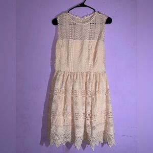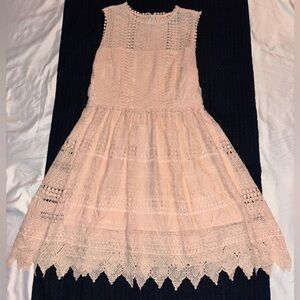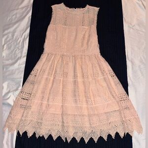 Delicate lace dress by BB Dakota. Features a light pink shade. Ideal for elegant events.