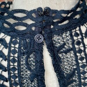 * Lace outer, lined underneath starting just above the chest, small stand up collar, Babydoll style