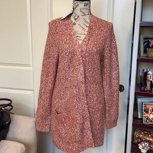 BB Dakota Steve Madden Odetta Open Front Cardigan Orange Marbled Long Sleeve large New from non smoking home