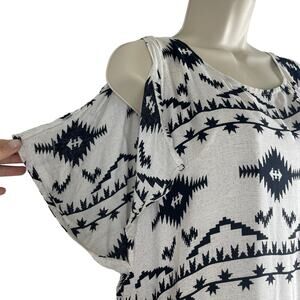 BB Dakota Melody Aztec Shift Mini Dress Slit Shoulder Off White Size XS